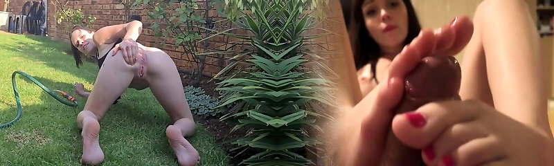 07:58Dark-hued twins take off their clothes and stance in the garden